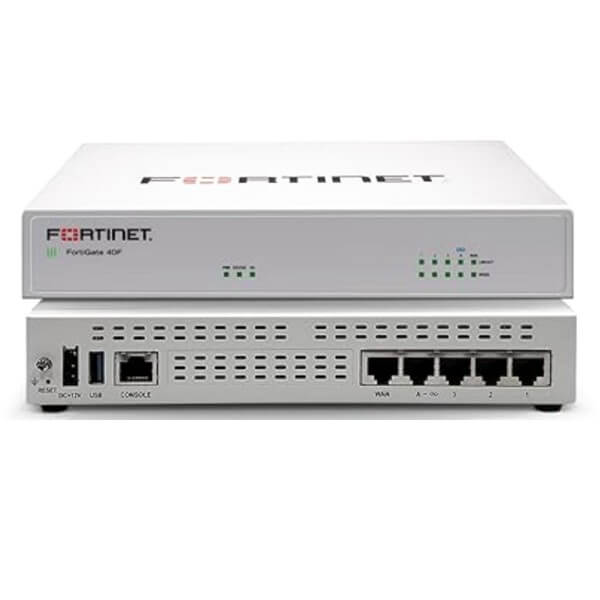 Fortinet FortiGate 40F is a network security firewall that provides unified threat management, VPN connectivity, and advanced intrusion prevention for business networks.